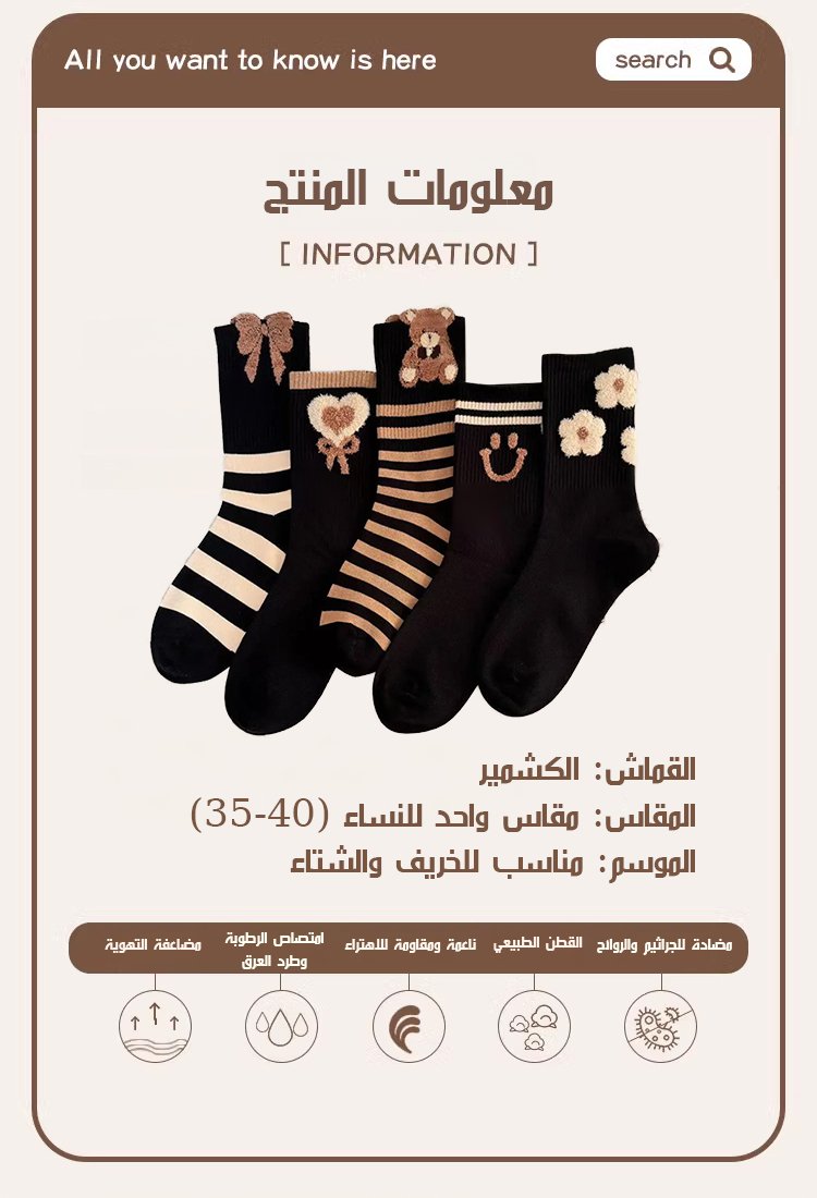 جوارب طويلة جميلة مطرزة من الصوف للنساء
