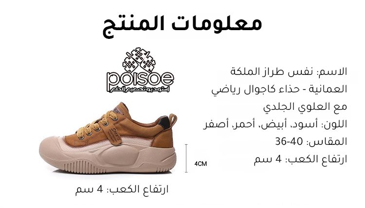 نفس طراز الملكة العمانية - حذاء كاجوال رياضي مع العلوي الجلدي