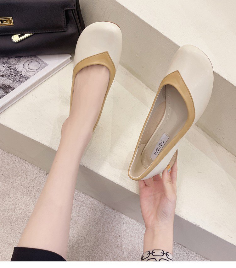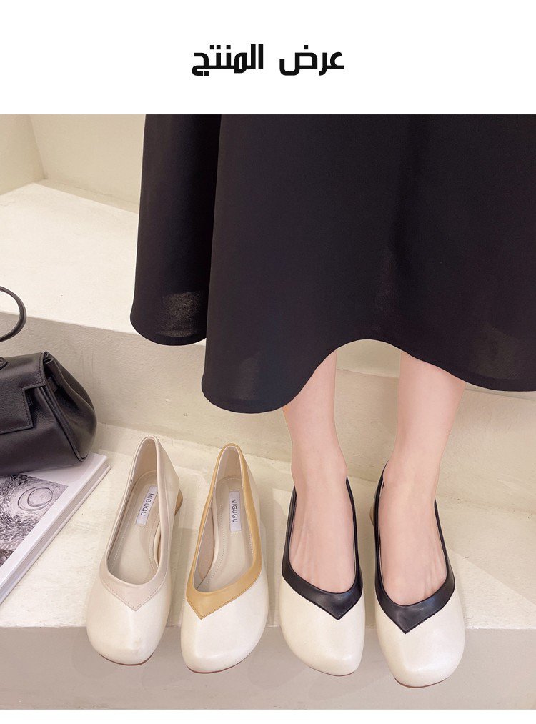 الحذاء مع الجلد الناعم والكعب السميك وراسه المستدير