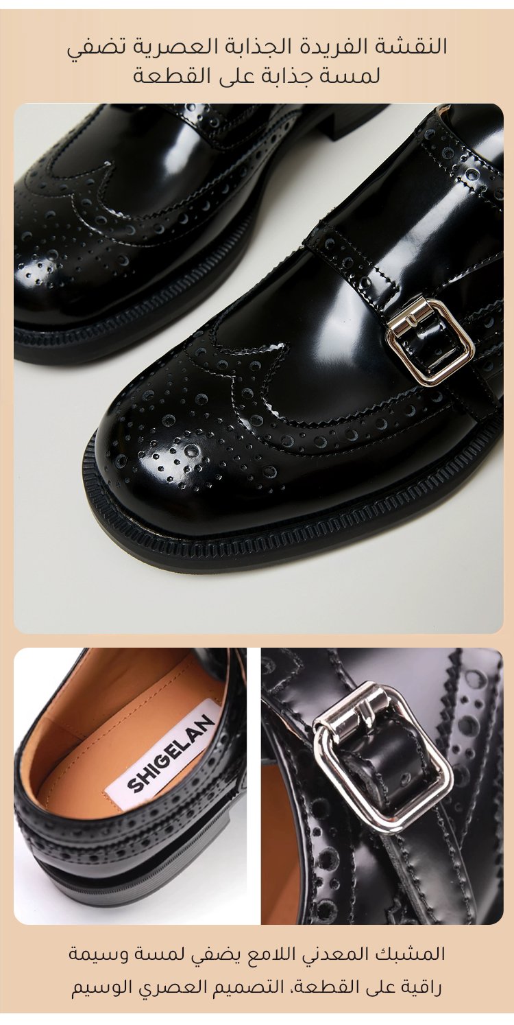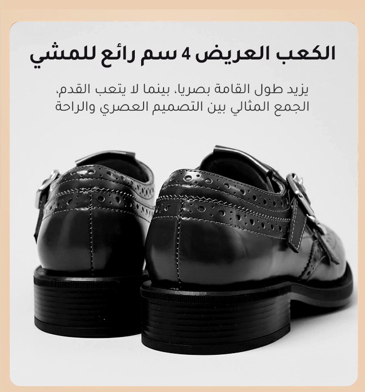 حذاء إيطالي من جلد البقر بكعب عريض ومشبك مزدوج