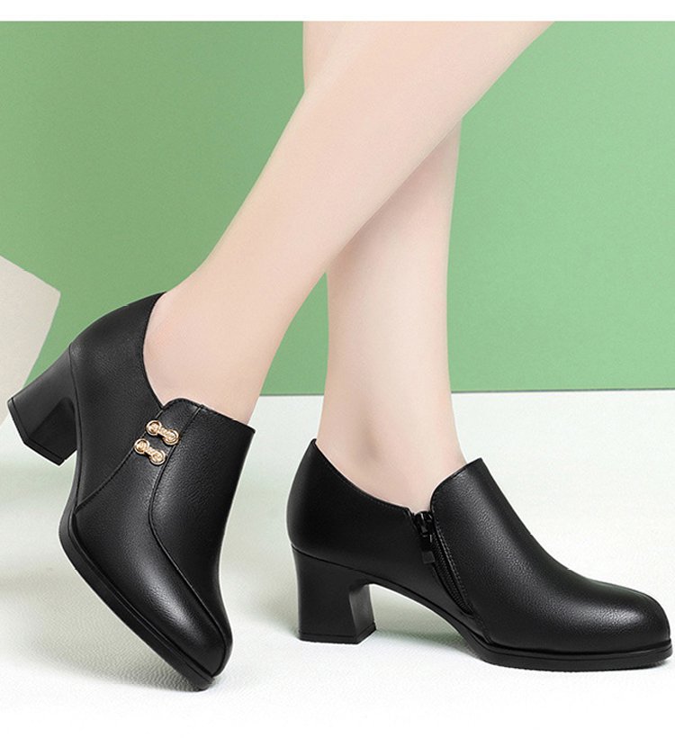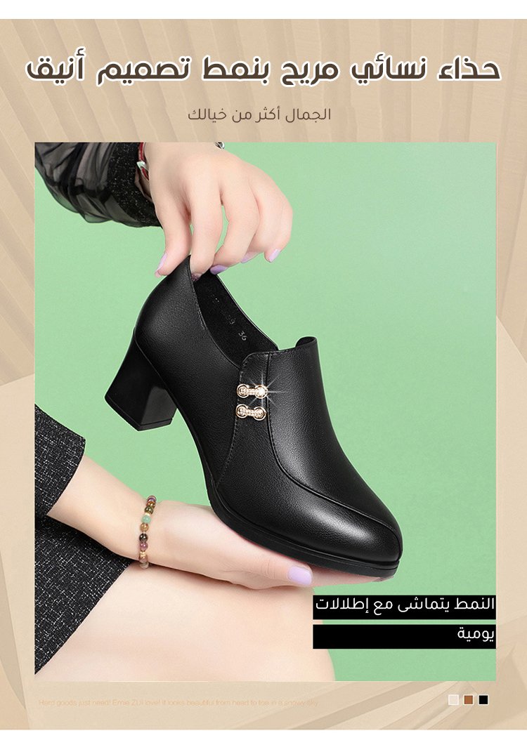 حذاء كعب سميك جلدي إيطالي لمنتصف العمر